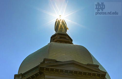 September 14, 2023; Mary statue on the Dome shortly after the completion of the 2023 re-gilding. (Photo by Matt Cashore/University of Notre Dame)