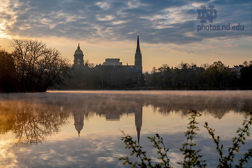 April 22, 2021; Sunrise over St. Mary’s Lake. (Photo by Barbara Johnston/University of Notre Dame)