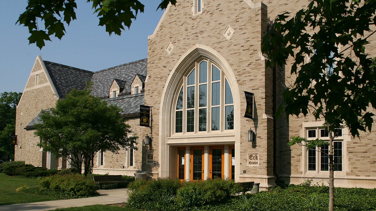 Depart from outside the Eck Visitors Center and use the Notre Dame Avenue sidewalk to proceed towards the Golden Dome. Listen to the narration as you walk. The tour is timed to match with a moderate walking pace.