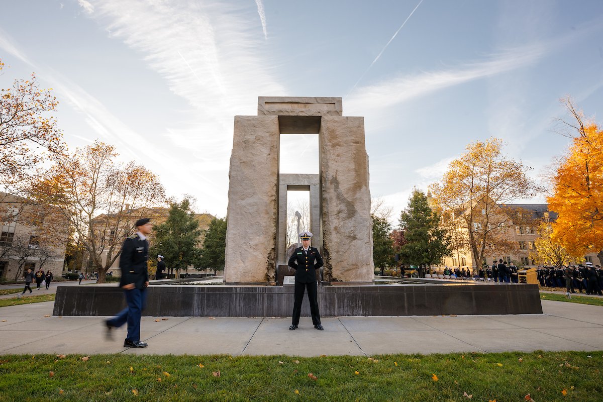 As you pass the student center, you’ll see ahead of you a large fountain, which spouts water throughout the warm months. It's known by students as “Stonehenge” because it resembles the prehistoric monument in England. It’s actual name is the Clarke Memorial Fountain, and it honors men and women who served in World War II, the Korean War, the Vietnam War, and in times of peace. Students have been known to run through the water of the fountain after rousing football victories.